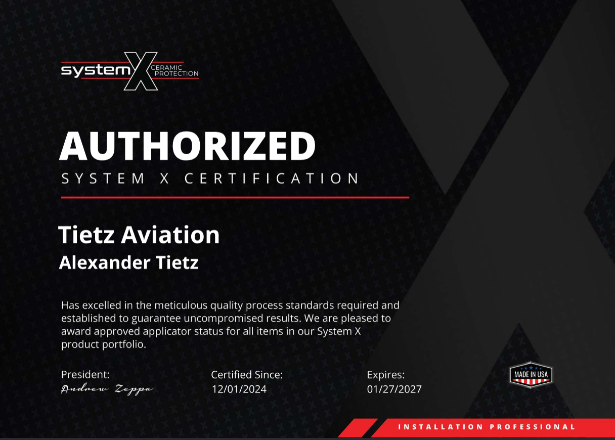 The high-altitude environment is unforgiving. System X® is the latest in ceramic technology. Not a clear bra, wax, polish, or paint sealant. This new coating exhibits outstanding resistance to friction, heat, and solvents. System X® seals, protects, and bonds to all aircraft surfaces, including composites acting as a protective barrier and providing unparalleled protection against the elements.